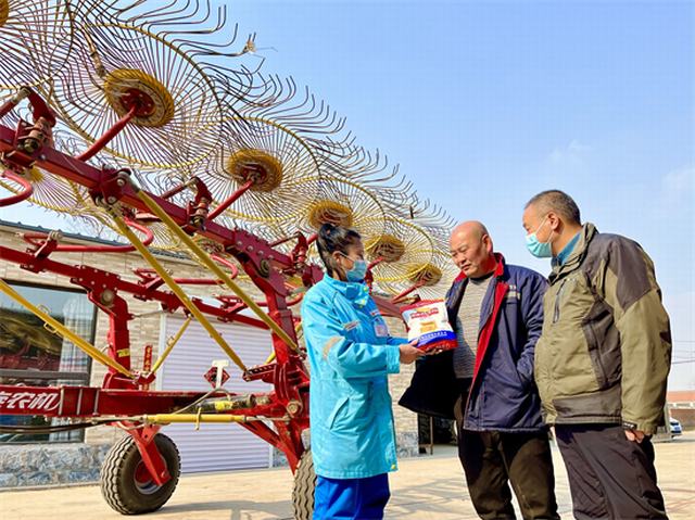 为了助农惠农,助力春耕备耕,山东销售临沂分公司开展 “送肥到家”服务,把化肥送到农户家里。员工现场指导如何科学施肥,赢得农户好评。(山东王彬)