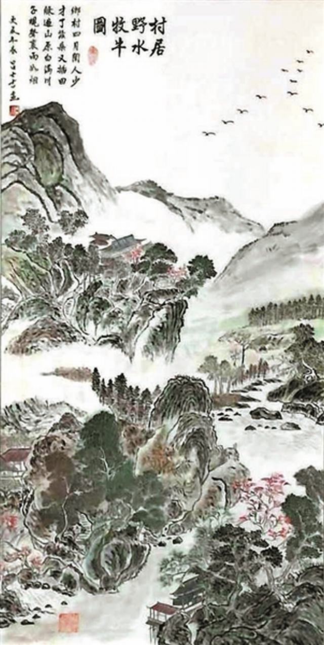 村居野水牧牛图(国画) 吉林石化 吕士吉