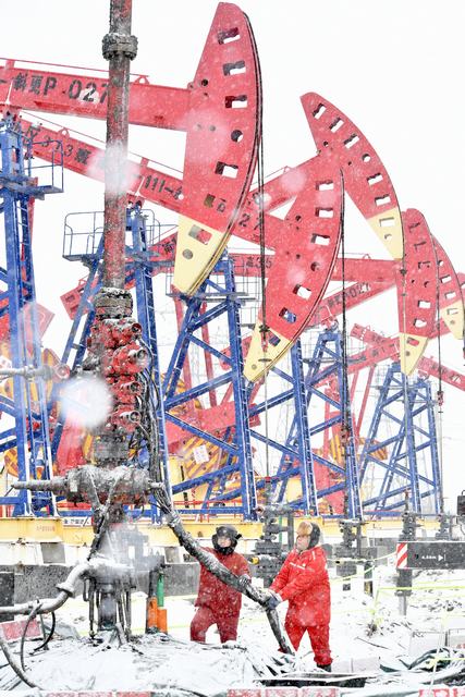 齐心协力紧固油管。