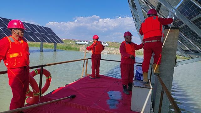 光伏板安装水上作业。