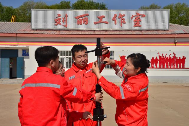 “大国工匠”刘丽带领刘丽工作室成员开展技术革新。