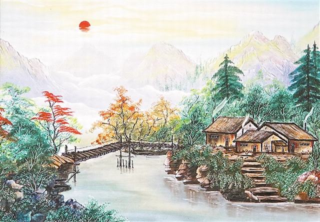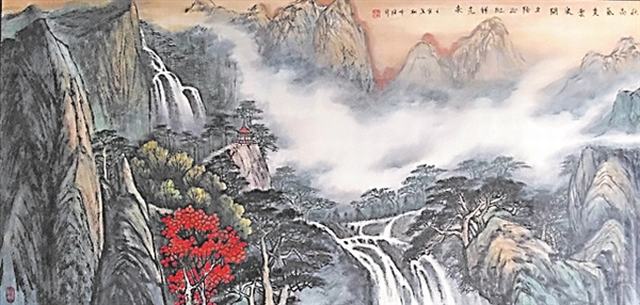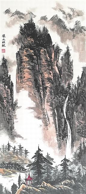 瀑水轻飘(国画) 辽阳石化 赵志恒